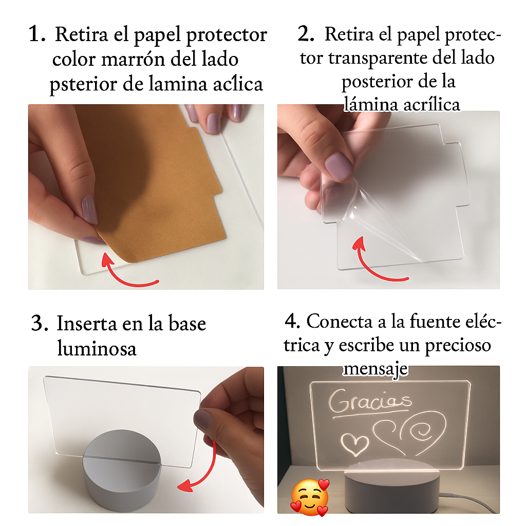 4,- Escribe tu mensaje con el marcador incluido… ¡y deja que la luz haga magia!