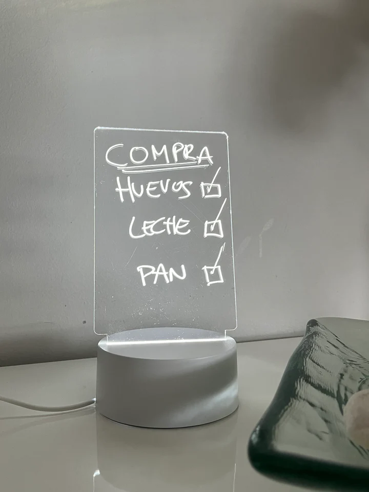 Me encanta esta lámpara. Además de iluminar suavemente, puedo escribir recordatorios o listas de tareas. ¡Es perfecta para mi escritorio! -