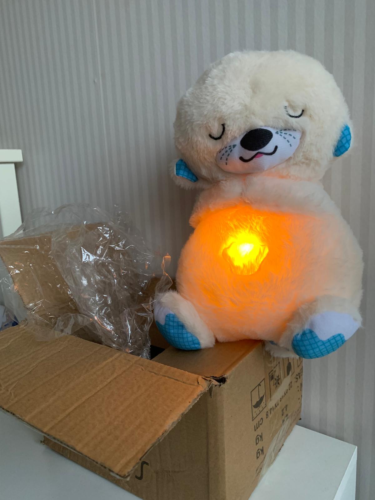 Llegó rapidísimo y bien empaquetado. El peluche funciona perfecto y es muy relajante.